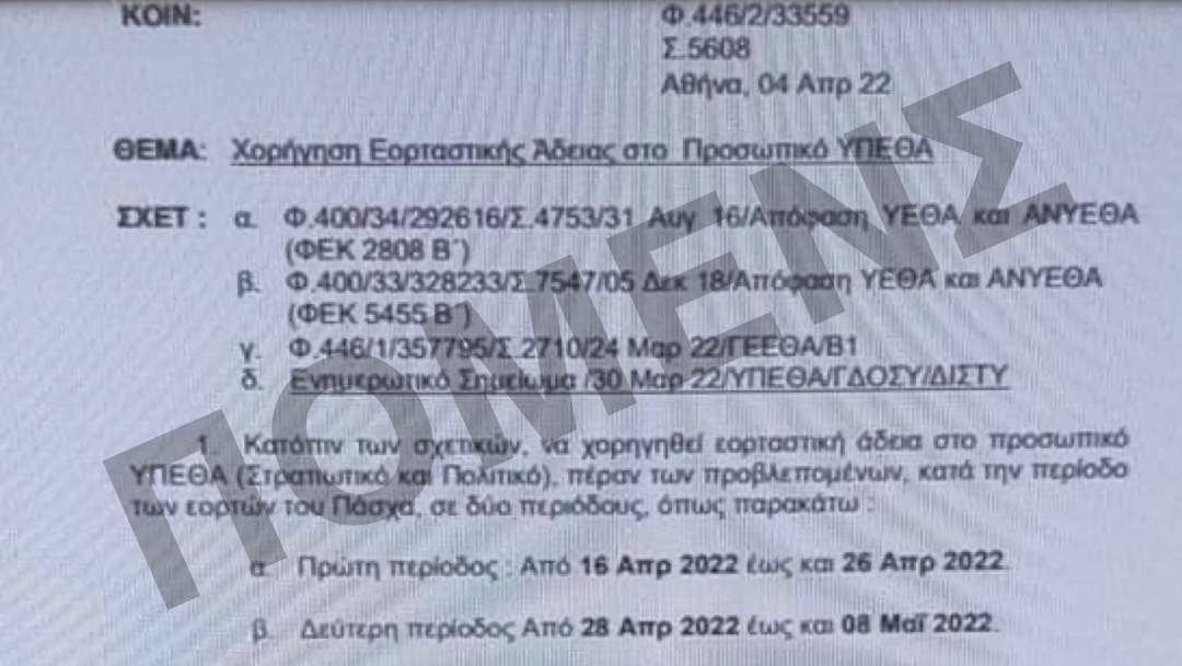 ΠΟΜΕΝΣ: Εορταστικές άδειες περιόδου Πάσχα για το προσωπικό ΕΔ.